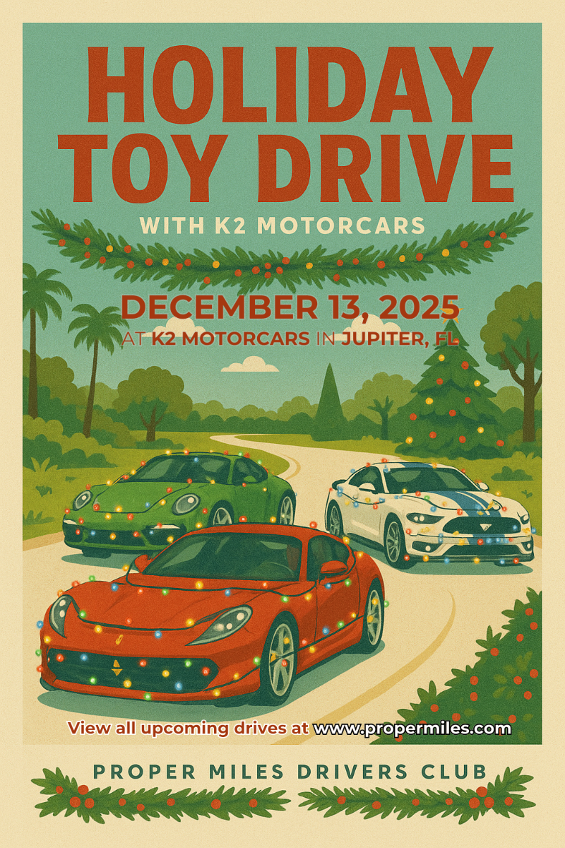 K2 Motorcars will host their holiday cars and coffee. If you haven't been, it's an awesome event! Bring an unwrapped, unopened toy for Toys for Tots. Then at 10:30 AM, we will leave as a large (very large) group on a 1hr + backroad drive ending for brunch at 1000 North.